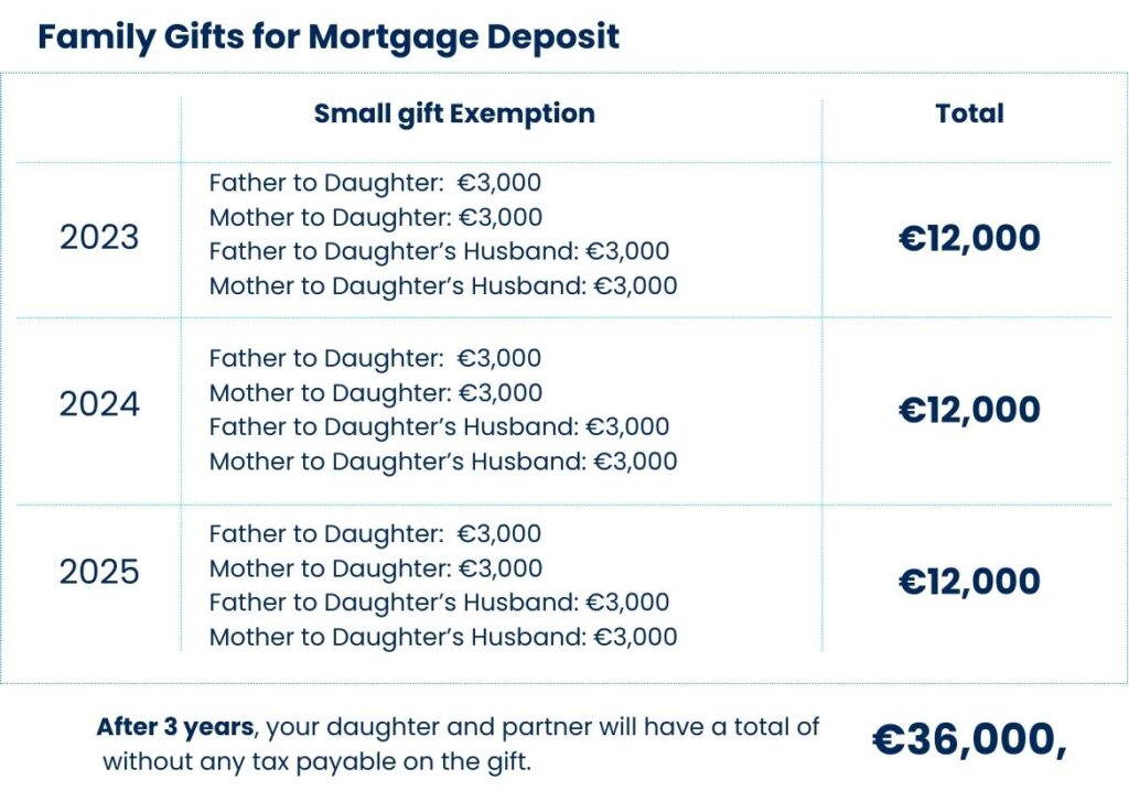 So, theoretically, each parent could give €3,000 to both their child and their child’s partner, totalling €12,000, without incurring any tax liabilities.